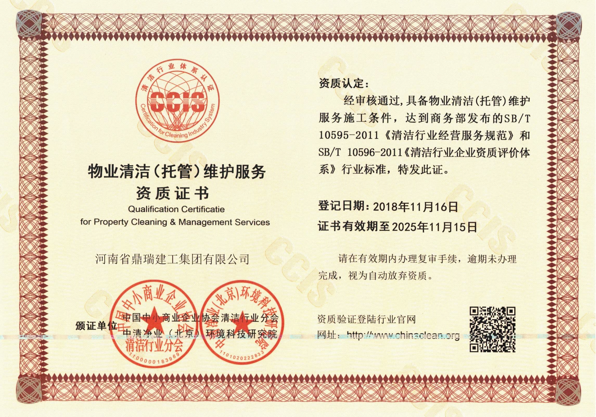 物業清潔(托管)維護服務資質證書